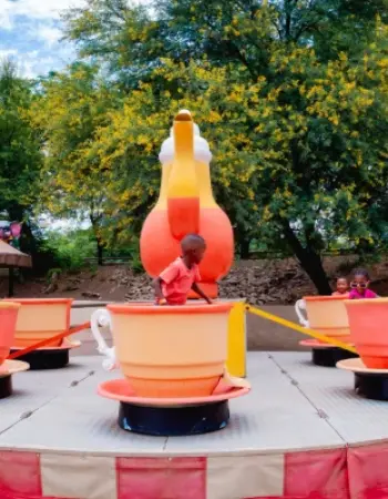 Climb into a colorful cup and take a spin full of laughter and fun! The Cups and Saucer Ride brings classic amusement park charm with a playful twist — literally. Perfect for younger guests, this ride gently rotates in smooth circles, offering giggles and joy with every spin.